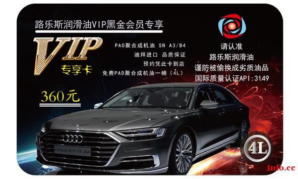 路乐斯机油卡:店内价值360元的机油,持卡消费4L机油免费,机油VIP卡只需36元/张,